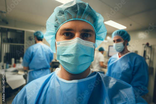 Generative AI Portrait of experienced doctor at hospital patient examination consultation medicare