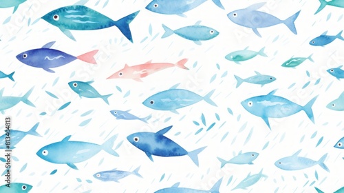 Generative AI Simple aquarelle fish pattern