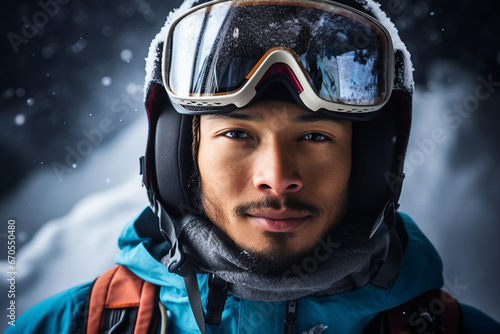 Generative AI Young people sports fans snowboarding climbing up down mountain resort christmas time