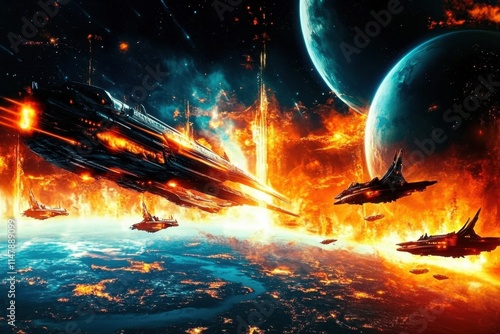 Generative design showcases an imaginative extraterrestrial war scene.