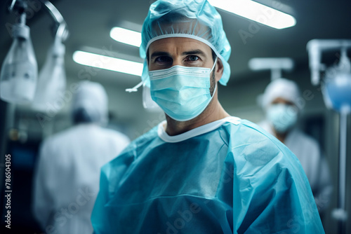 Generative IA picture modern operating room in futuristic surgery clinic team of professionals operating patient