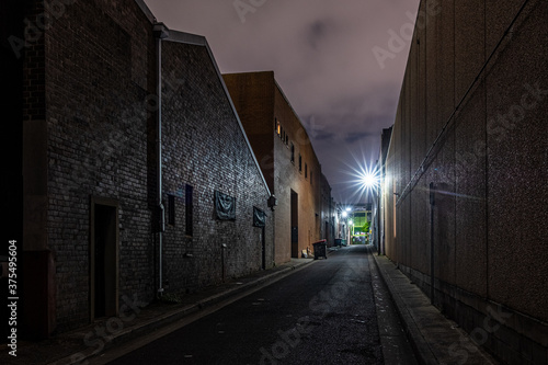 generic factory scene in small alley at night
