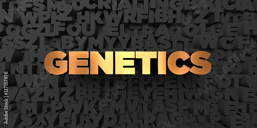 Genetics - Gold text on black background - 3D rendered royalty free stock picture. This image can be used for an online website banner ad or a print postcard.
