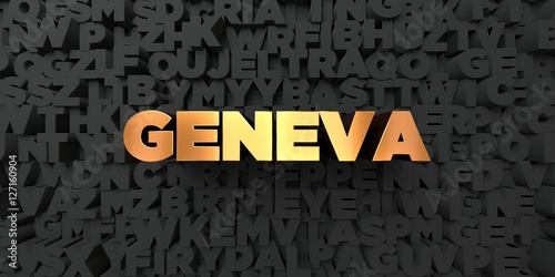 Geneva - Gold text on black background - 3D rendered royalty free stock picture. This image can be used for an online website banner ad or a print postcard.