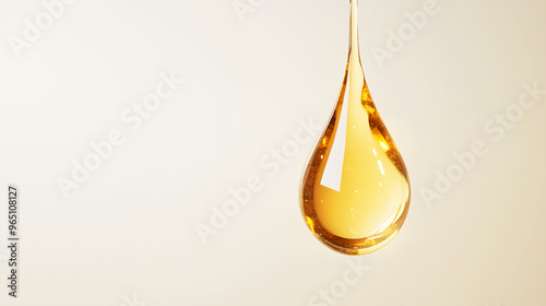 gentle drop of golden oil suspended in mid-air, set against a minimalist, light-colored backdrop for a clean and modern aesthetic