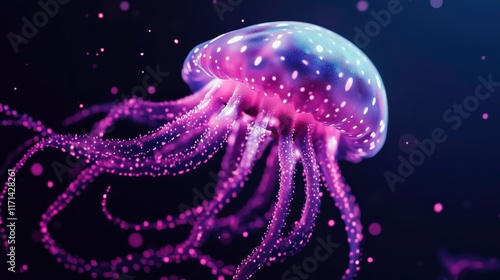Gentle Glowing Jellyfish in Dark Ocean Background
