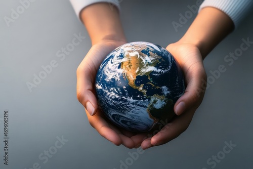 Gentle Hands Cradling the Earth, Symbolizing Care and Promoting Environmental Responsibility