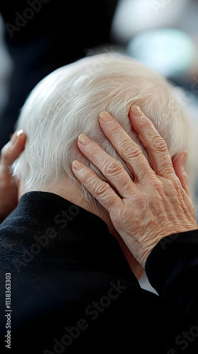 Gentle Hands on Aging Head, A Touch of Comfort and Care