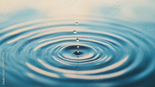 Gentle ripples form as water droplets fall, creating serene atmosphere.