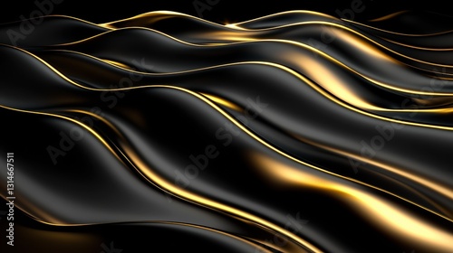 Gentle Ripples of Light on an Abstract Background with Flowing Gold and Black Waves