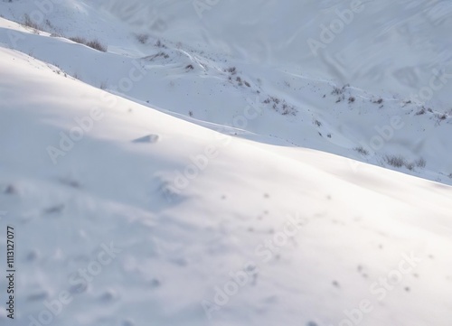 Gentle slope of a snow-covered hill with soft focus and subtle shadows, landscape, snow, shadow