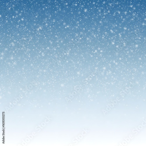 Gentle snowfall on a serene blue and white gradient background. An abstract winter concept for a magical and festive atmosphere.