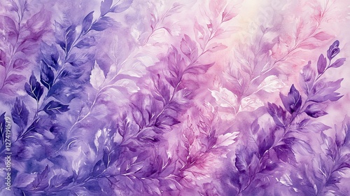 Gentle Violet and Cream Watercolor Background, Abstract Floral Design with Soft Leaves