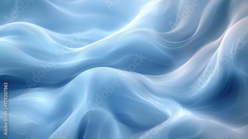 Gentle waves of silky blue fabric flowing gracefully in a soft light, creating a tranquil and soothing atmosphere