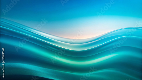 Gentle waves of turquoise and green create a serene, flowing landscape against a soft gradient sky. The smooth, fluid shapes evoke a sense of tranquility and movement.AI