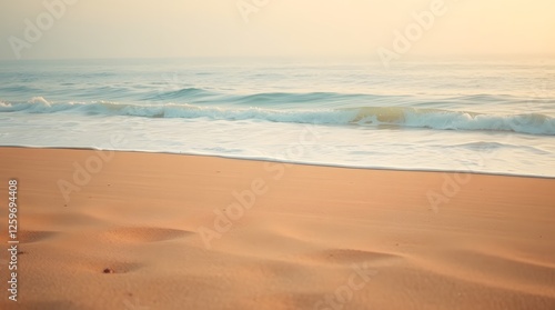 Gentle Waves Washing Ashore on Sandy Beach at Sunrise