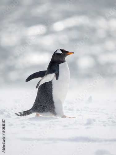 Gentoo Penguin in deep snow. Antarctica, Antarctic Peninsula, Wiencke Island.