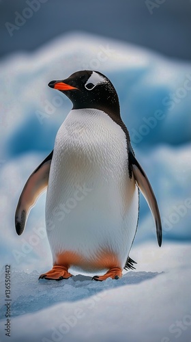 Gentoo Penguin Standing on Ice in a Cold Arctic Landscape During Daylight