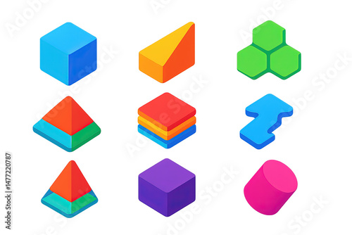 Geometric 3d icons set – vibrant, colorful shapes for design projects