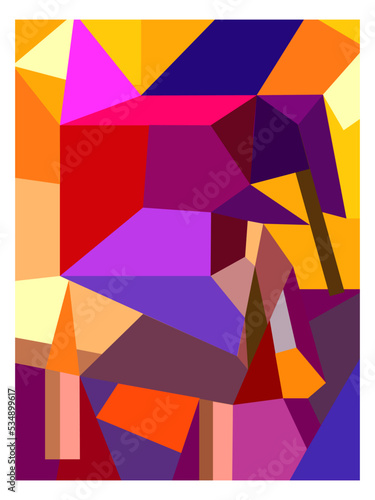 Geometric abstract asymmetric seamless pattern of simple angular shapes. Color palette with harmonious composition.