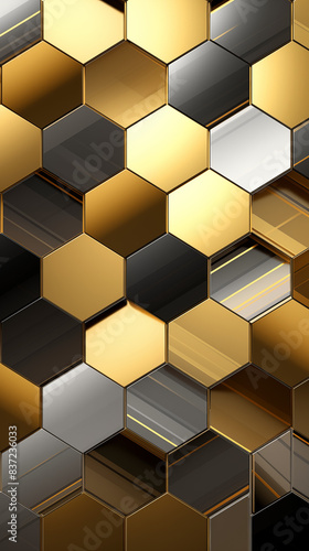 Geometric Abstract Image Pattern Background, Overlapping Hexagons in Metallic Shades of Silver and Gold, Texture, Wallpaper, Background, Cell Phone Cover and Screen, Smartphone, Computer, Laptop, 9:16