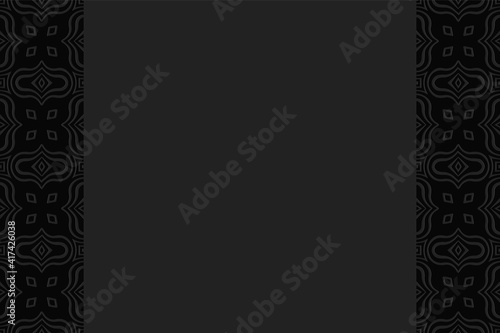 Geometric black volumetric background from a relief abstract ethnic pattern. Vertical inserts. 3D convex shape effect for web design, banner, presentations.