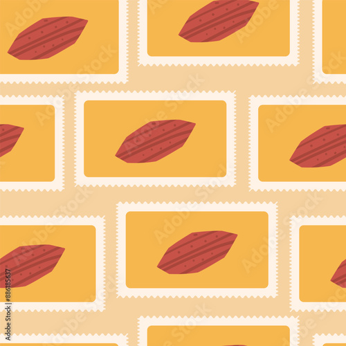 Geometric colorful seamless pattern. Cutouts abstract shapes on stamps repeat background. Sticker endless cover. Vector hand drawn flat illustration.