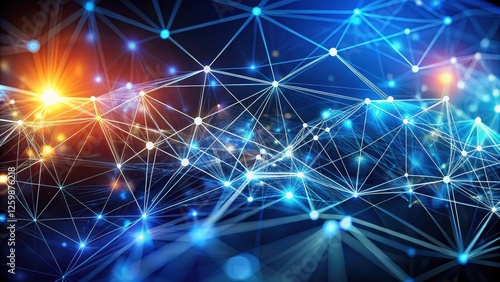 Geometric data visualization concept with connected nodes and lines in a futuristic style for a corporate or tech industry presentation, innovation, big data