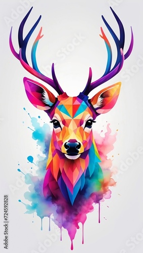Geometric Deer in Vibrant Smoke, Vector Art with Watercolor Hues