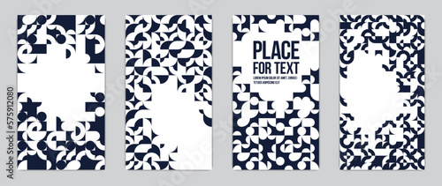 Geometric design covers vector set, black and white modular constructor design backgrounds, flyer templates in retro 70s style, art pattern square and circle shapes.