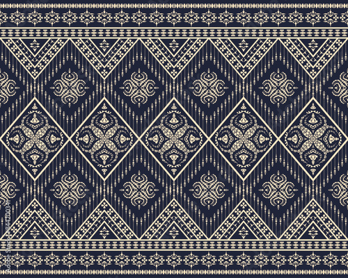 Geometric ethnic pattern traditional Design for background, carpet, wallpaper, clothing, wrapping, Batik, fabric, sarong, Vector illustration embroidery style.