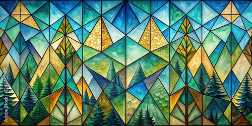 Geometric Forest Stained Glass Composition, Watercolor Style, Nature Concept