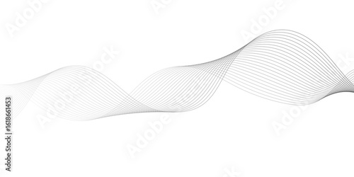 Geometric grey vector waves on white background. Editable stroke.