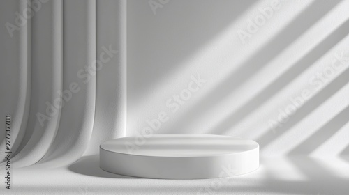Geometric Harmony for Product Display, showcasing a clean white textured plaster background with rhythmic patterns, ideal for presenting cosmetics on a sleek podium.