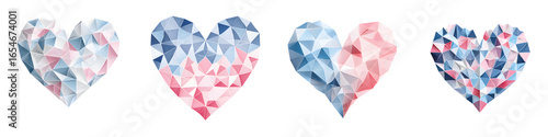 Geometric Heart Collection - Low Poly Design Isolated on White