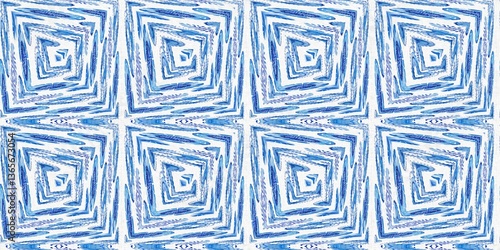 Geometric indigo shape seamless border. Irregular hand drawn batik texture for banner. Imperfect blue acid bleed swatch.