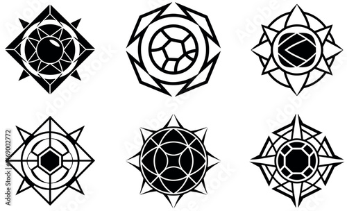 Geometric Mandala and Star Pattern Icon Set - Intricate Abstract Designs