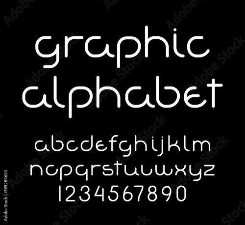 Geometric modern alphabet. Lowercase letters and numbers for poster, headline, decorative lettering. Vector illustration.