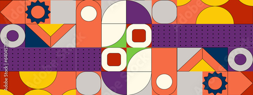 Geometric mosaic, Bauhaus pattern. Modern geometry figure, shape. Bauhaus. Geometric mosaic. Minimal mural texture. Scandinavian. Geometric mosaic print. 50s, 60s, retro wallpaper. Vector illustration