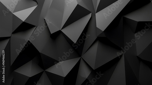 Geometric Noir Elegance - Dark Low-Poly Shapes on Matte Black Background for Stylish Wallpaper Design