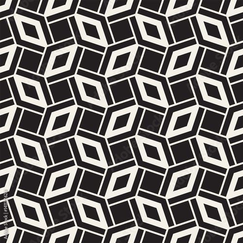 Geometric Ornament With Striped Rhombuses. Vector Seamless Monochrome Pattern