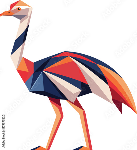 Geometric Ostrich Illustration, Colorful Low Poly Bird Design, African Wildlife Art, Vector Graphic