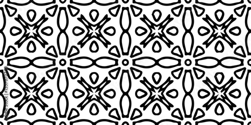Geometric Pattern: A modern, repeating geometric pattern in black and white, showcasing intricate shapes and lines, ideal for backgrounds and design projects.