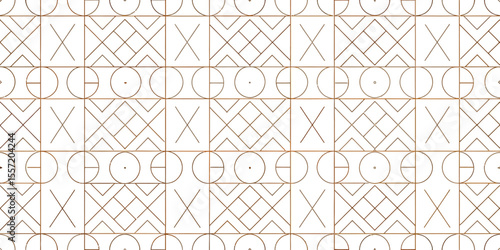 Geometric Pattern Design: A sophisticated repeating pattern composed of interconnected circles, lines, and X shapes forms a visually engaging and symmetrical design.