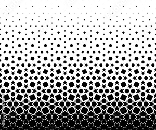 Geometric pattern of black figures on a white background. Seamless in one direction.SCALE method