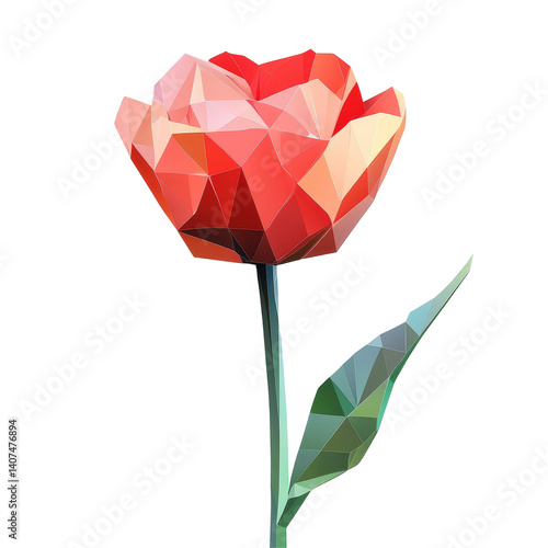 Geometric polygonal flower design with vibrant hues on a clean transparent background, showcasing abstract art, Polygonal flower on transparent background. Geometric polygonal flower transparent