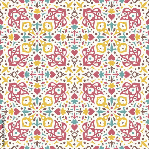 Geometric seamless pattern with hearts