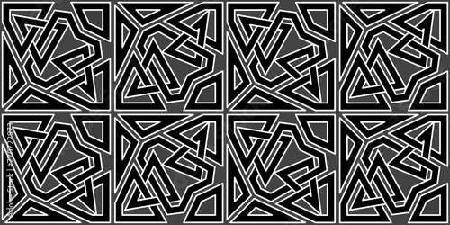 Geometric shape, Islamic seamless pattern, detailed motif inspired by Moroccan mosaics and arabesque art, a modern and unique Islamic ornament, triangle background, Ethnic style, geometric scrollwork