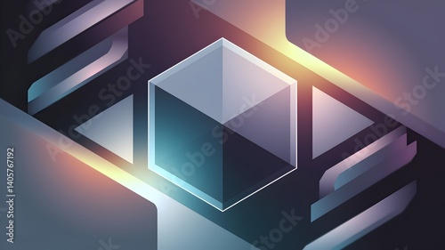 Geometric shapes forming a technological abstract composition, creating a modern design aesthetic. The interplay of light and shadow creates a sense of depth