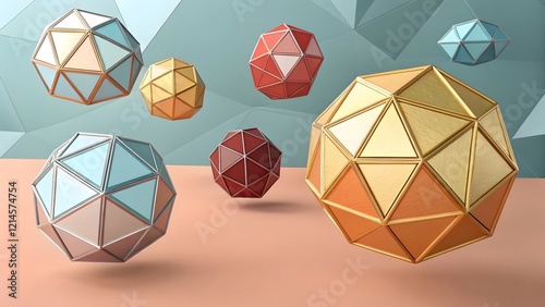 Geometric Shapes in Motion with Metallic Finish and Colorful Design